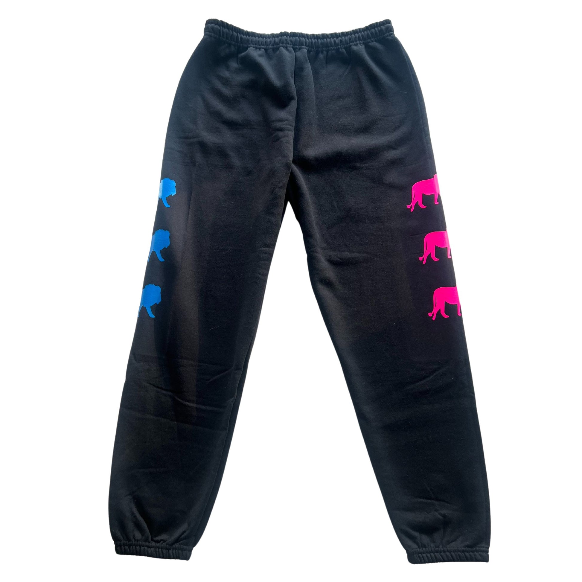 Black old-school jogger, sweatpants with pink and blue lions