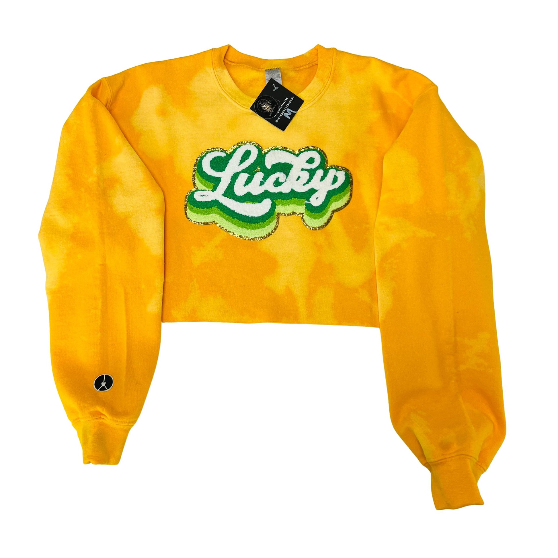Gold Crop tie-dye crewneck with chenille Lucky ombré patch