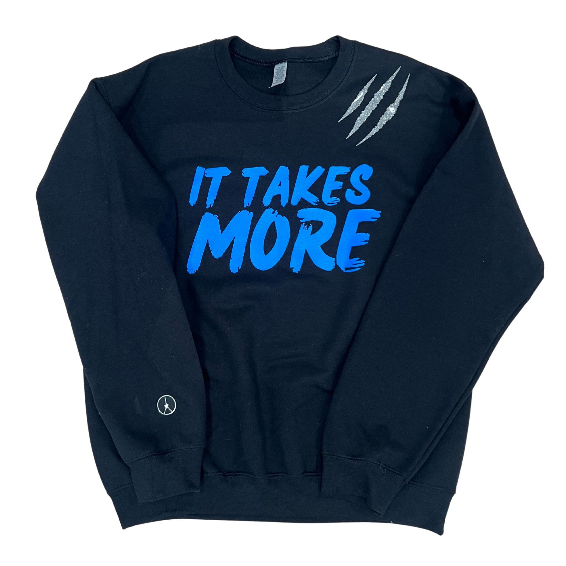 Black crewneck Lions claw glitter silver with blue it takes more.