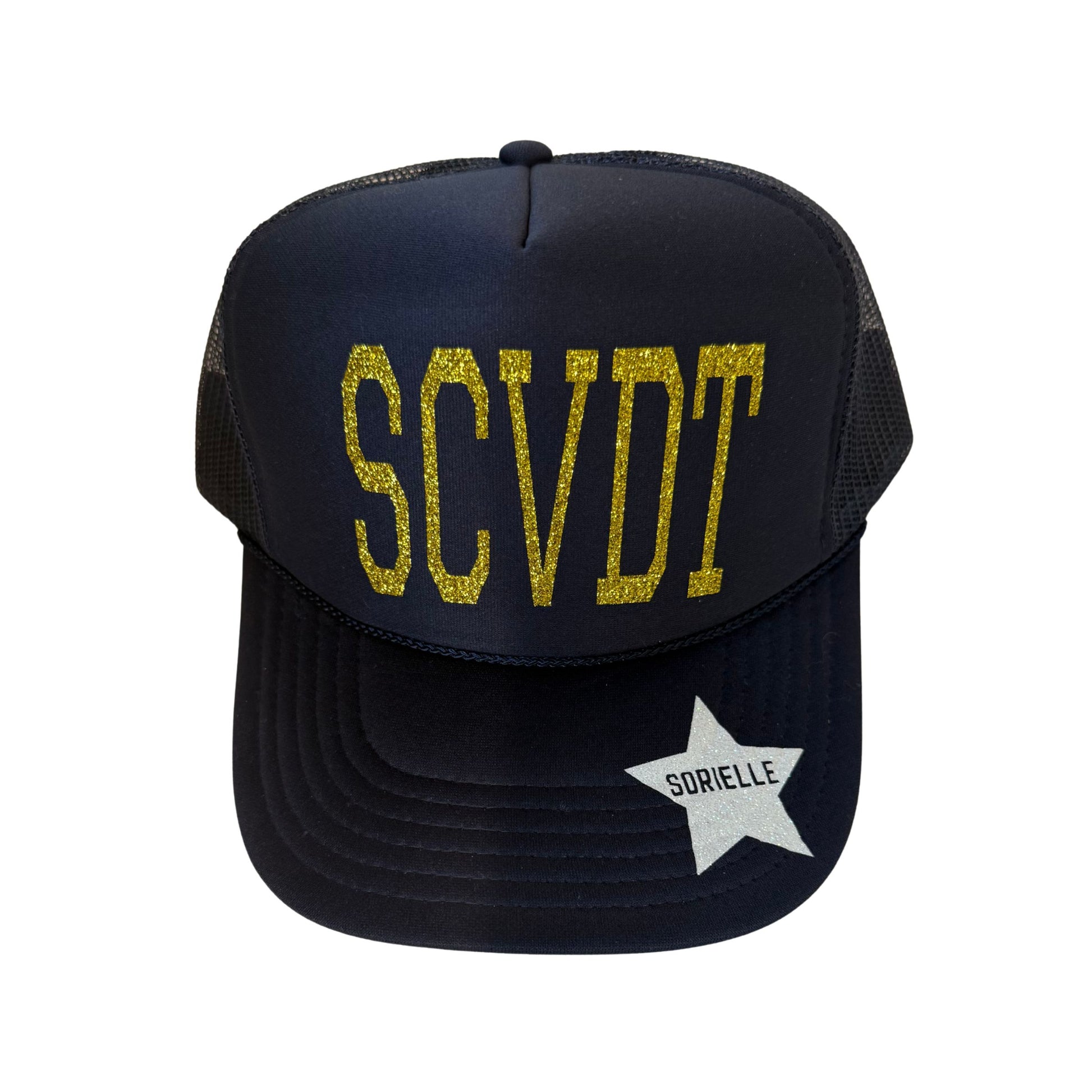 Navy Trucker Hat SCVDT with Gold Glitter and customizable star option on brim