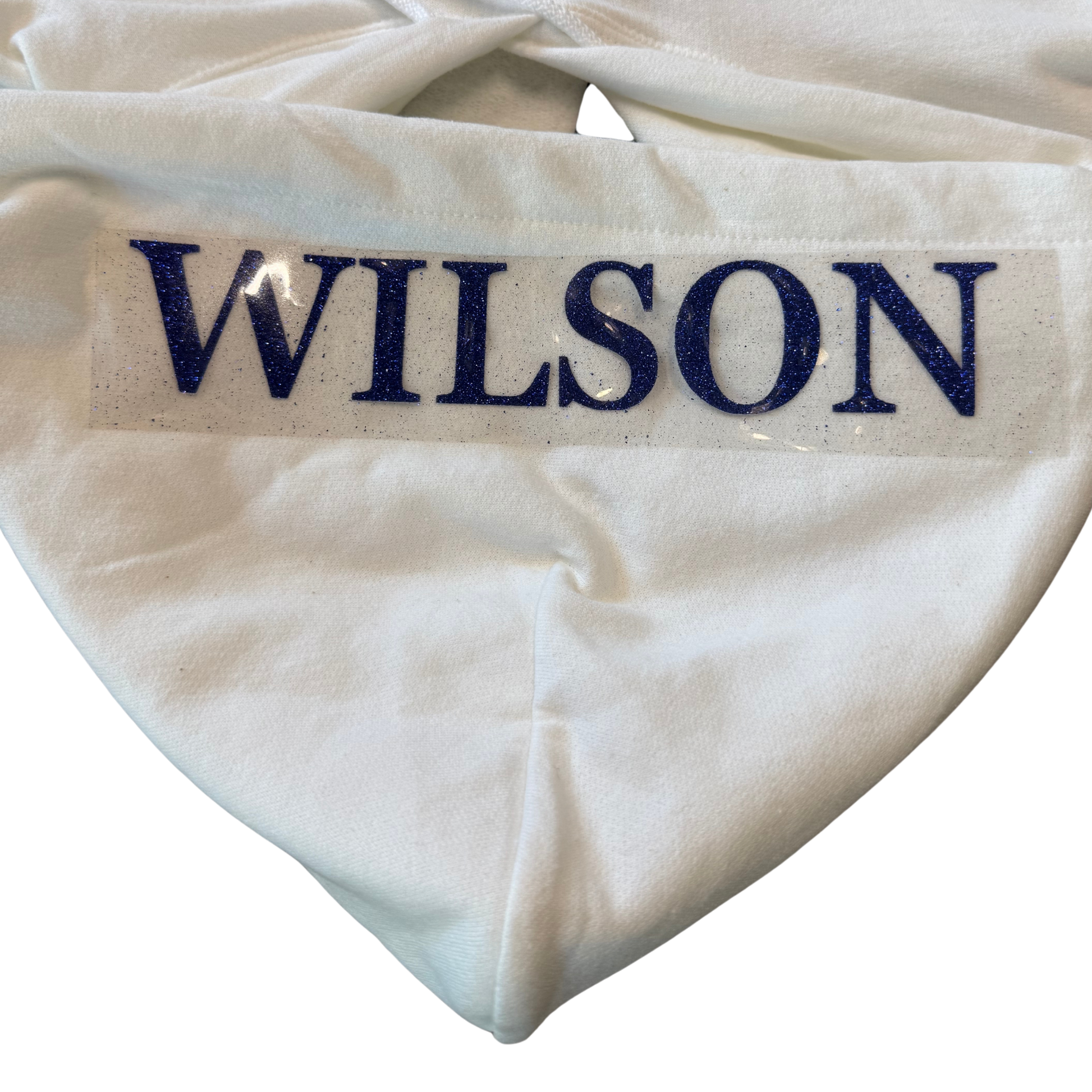 White hoodie with shamrock's game day in Royal blue sleeve with neon pink stars and CC and option for customizable hood with last name