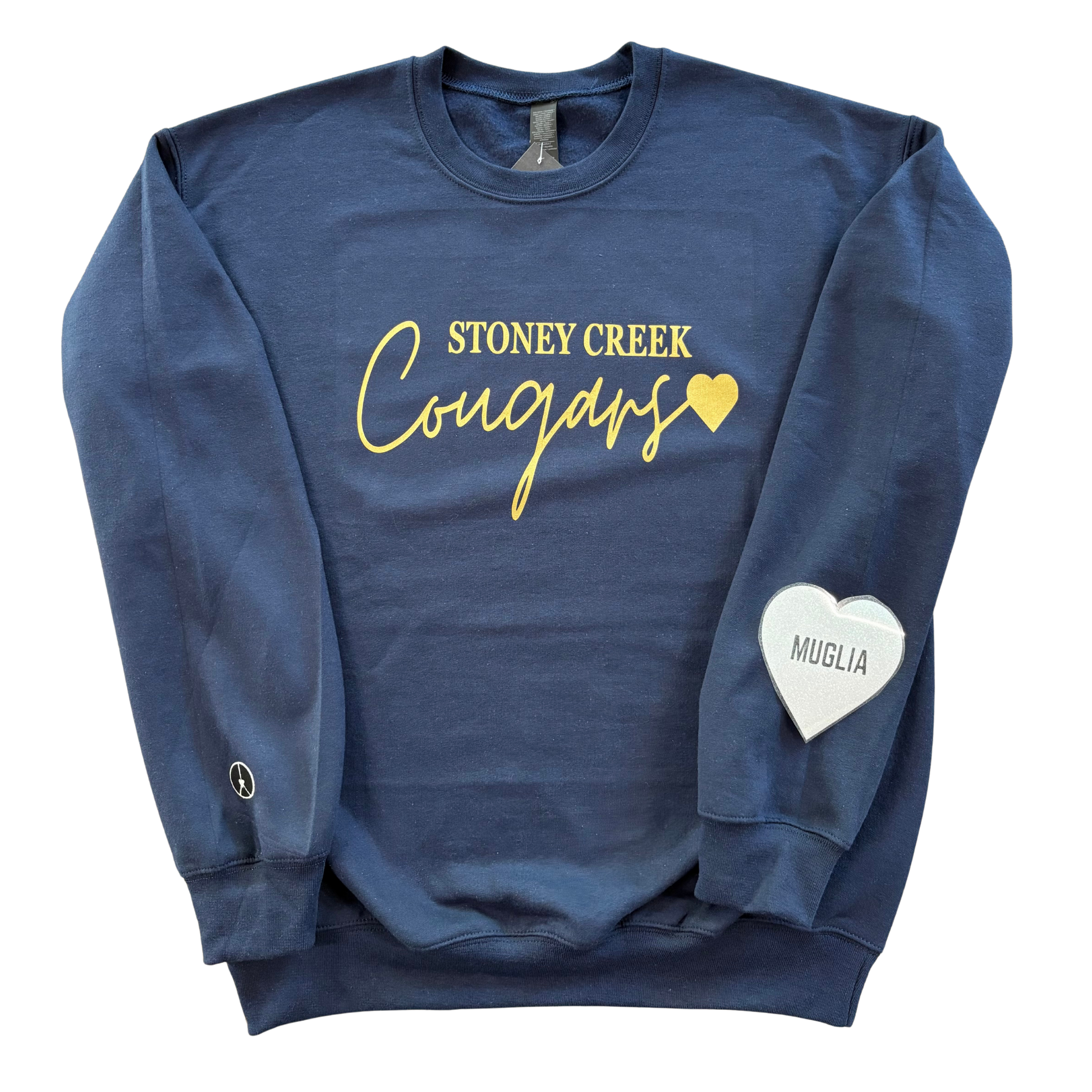 Navy crewneck sweatshirt with Stoney Creek Cougars on front